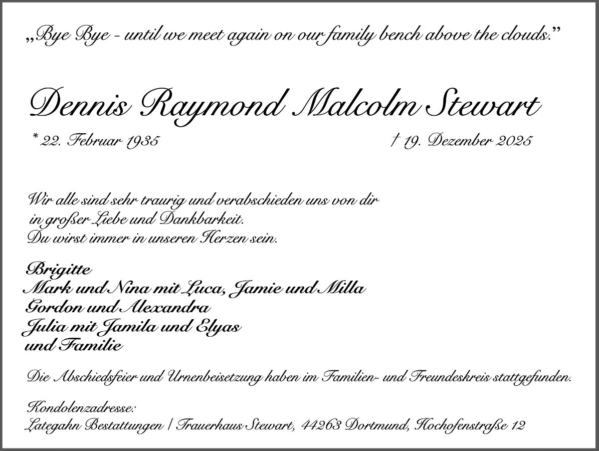 geboren am 22. Februar 1935 gestorben am 19. Dezember 2025
