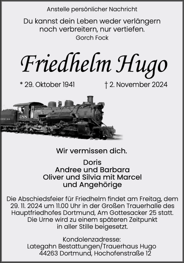 geboren am 29. Oktober 1941 gestorben am 2. November 2024