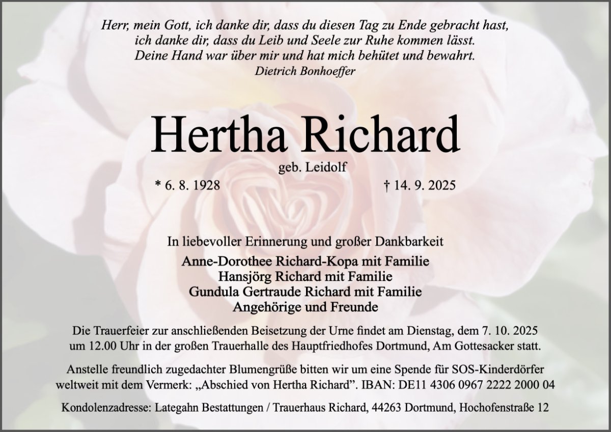 geboren am 6. August 1928 gestorben am 14. September 2025